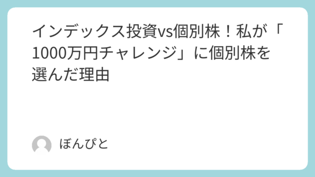 インデックス投資vs個別株!私が「1000万円チャレンジ」に個別株を選んだ理由