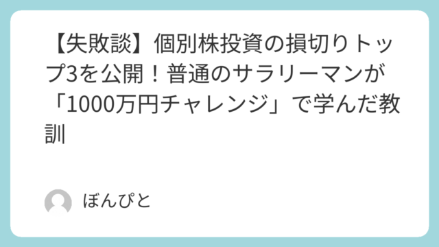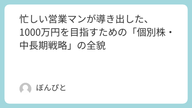 都内で営業マンとして駆け回りながら、大好きなイギリス・スペインでのサッカー現地観戦を夢見て「資産形成」に励んでいる30代のサラリーマン投資家です。元手100万円から1000万円を目指す「1000万円チャレンジ」。今回は、先日行った保有銘柄の...