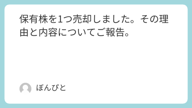 個別株投資 保有株を1つ売却しました。その理由と内容についてご報告。